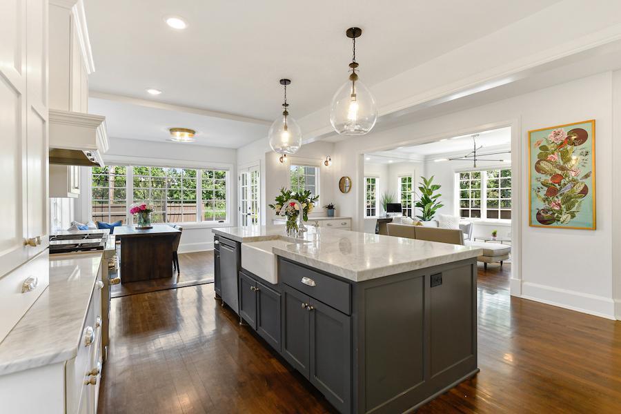 Beautifully updated three-story home in the sought-after Lowry Hill neighborhood of Minneapolis, steps to Lake of the Isles and Kenwood Park. Fantastic architecture, gorgeous finishes, outstanding spaces for entertaining. The gourmet kitchen is a chef's dream, complete with top-of-the-line appliances, center island, and exquisite marble countertops. Seamless flow to the backyard oasis with incredible stonework and the huge outdoor gas fireplace in front. The second level features three spacious bedrooms, each accompanied by its own bathroom, a convenient laundry room, and an elegant owner's retreat. On the third level you'll find a soaring family room with a vaulted ceiling, amazing windows, two additional bedrooms, and another bath. The spacious lower level has abundant storage and a flex space for exercise, sports, or toys. Quick and easy access to recreational trails, parks, restaurants, and shopping.