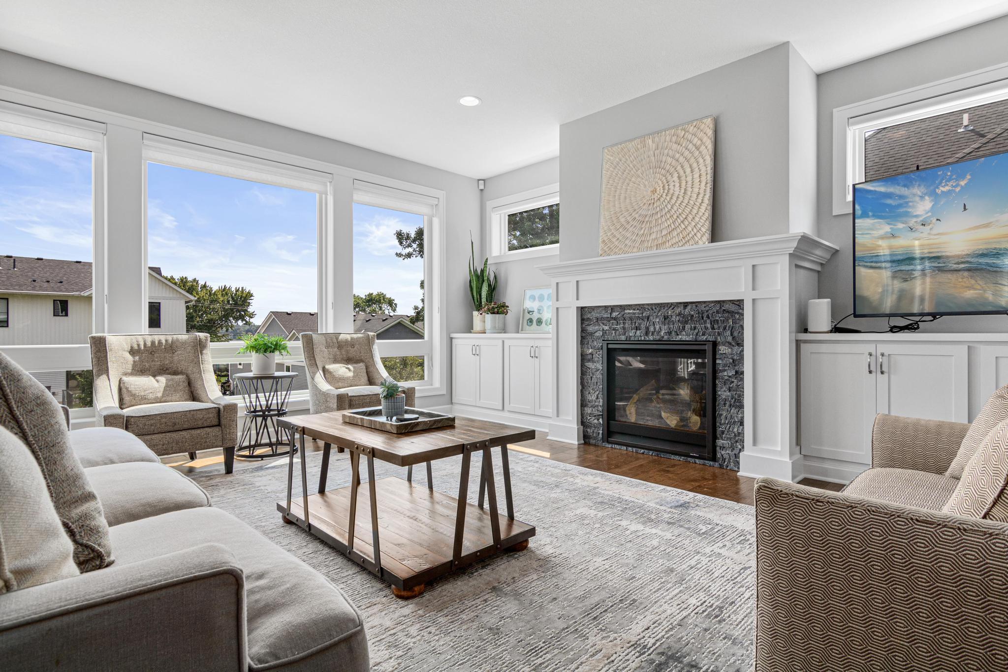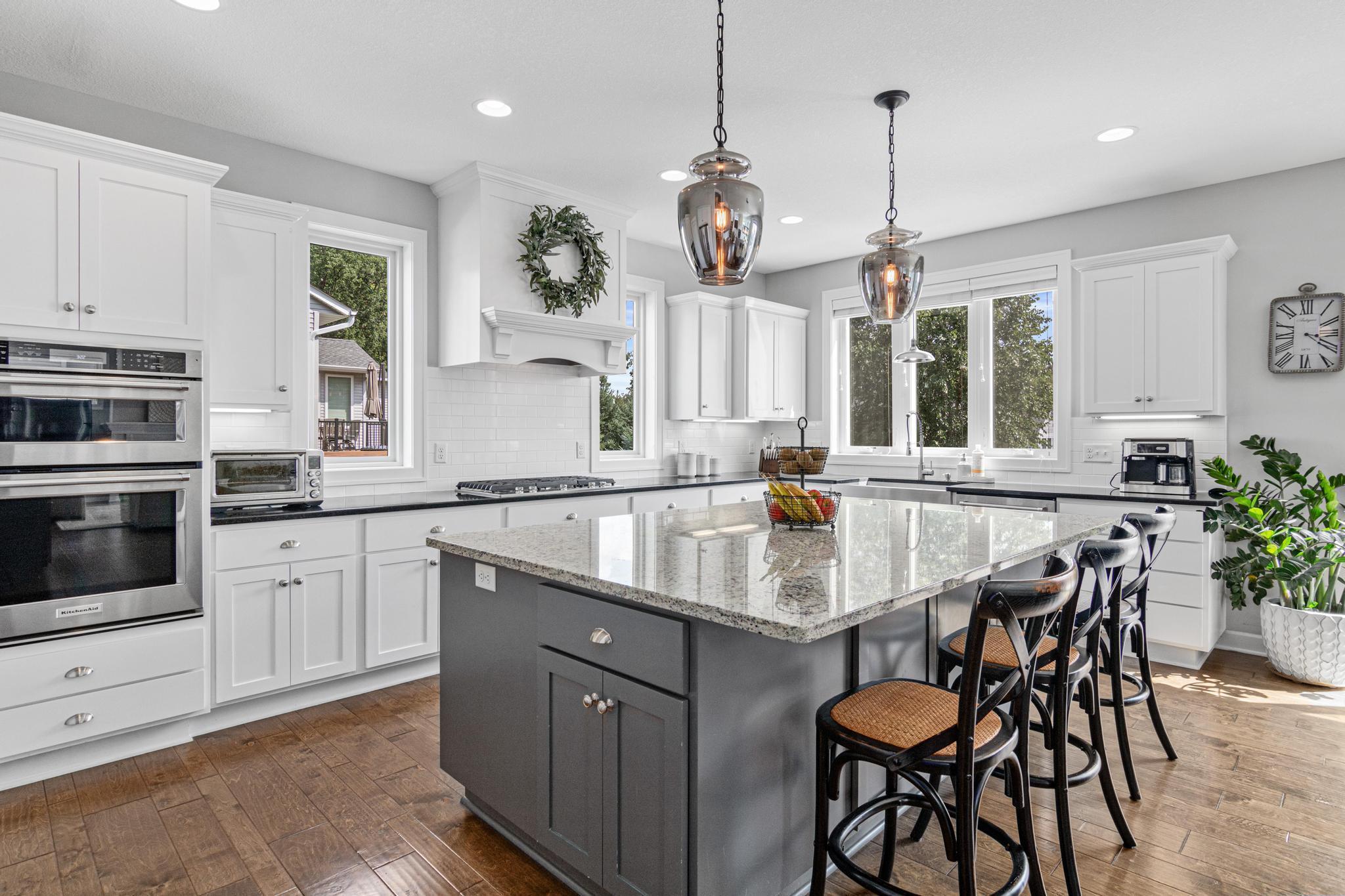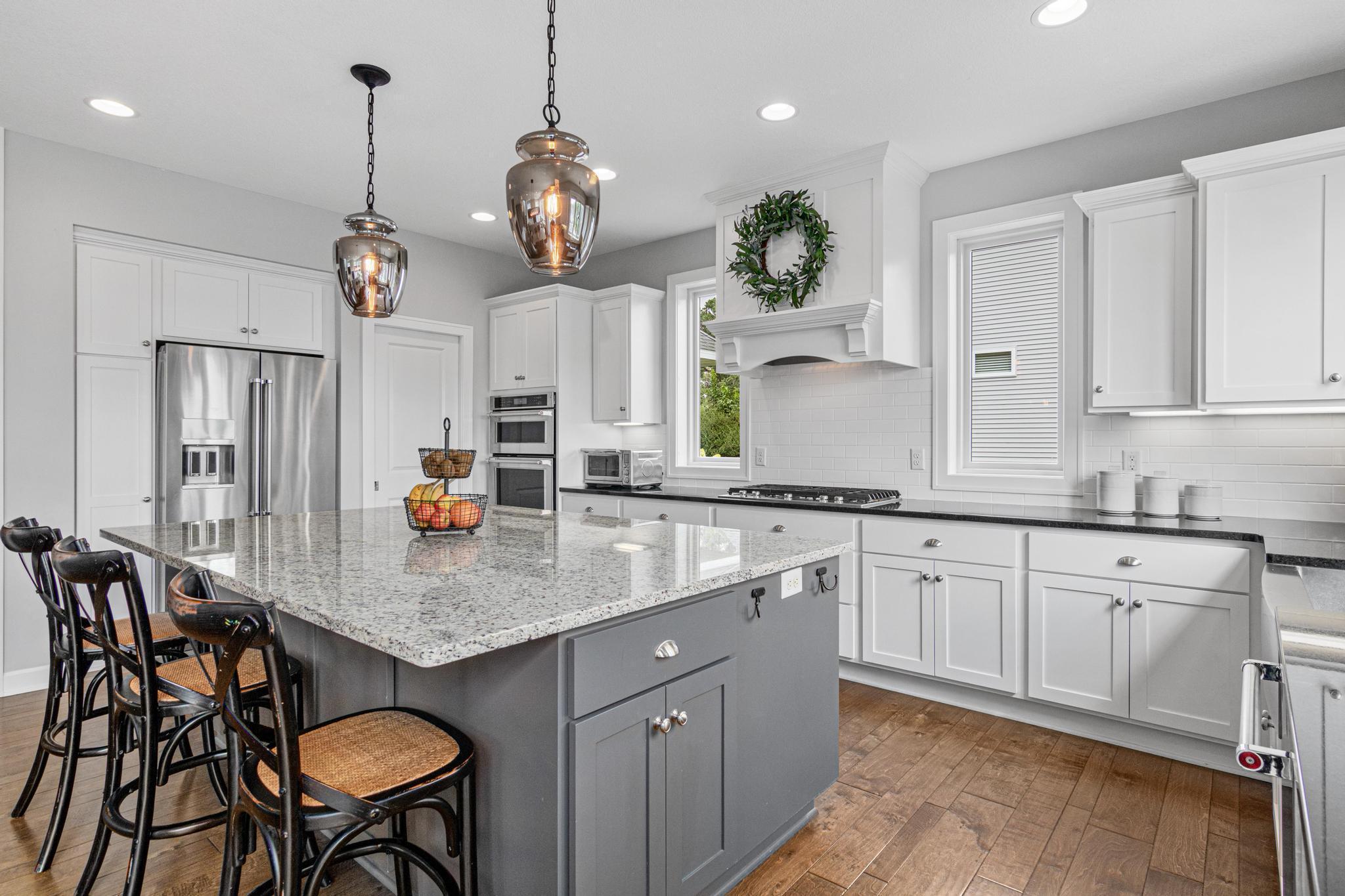 Welcome to this Zawadski Homes custom build near Lake Owasso. This beautifully maintained 4-bedroom, 4-bath home offers the style and features of new construction with thoughtful upgrades throughout. You'll love the open-concept main level featuring 9 foot ceilings, gleaming hardwood floors, a stunning kitchen with a large center island, walk-in pantry, and ample space for gathering. Upstairs you'll find three bedrooms, including a luxurious primary suite with a walk in closet, separate tub and shower, double vanity, plus the convenience of second-floor laundry. The walkout lower level includes a cozy family room, 4th bedroom, full bath, and a dedicated office--perfect for remote work. Step out to your custom paver patio, ideal for entertaining or relaxing with some of the friendliest neighbors in town. Easy access to walking trails, the beach, parks, with views of Lake Owasso. Don't miss this rare opportunity in sought-after Mounds View Schools!