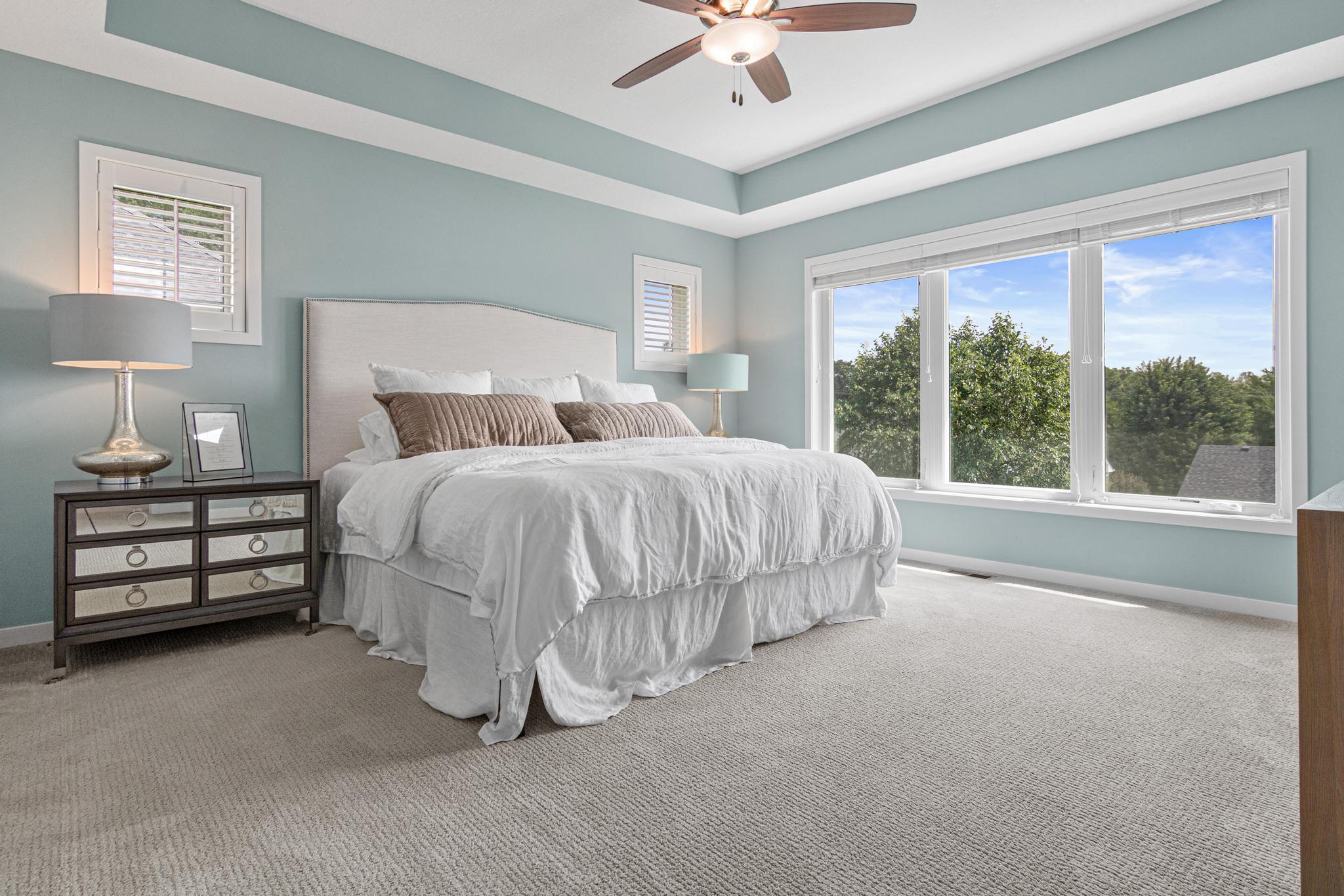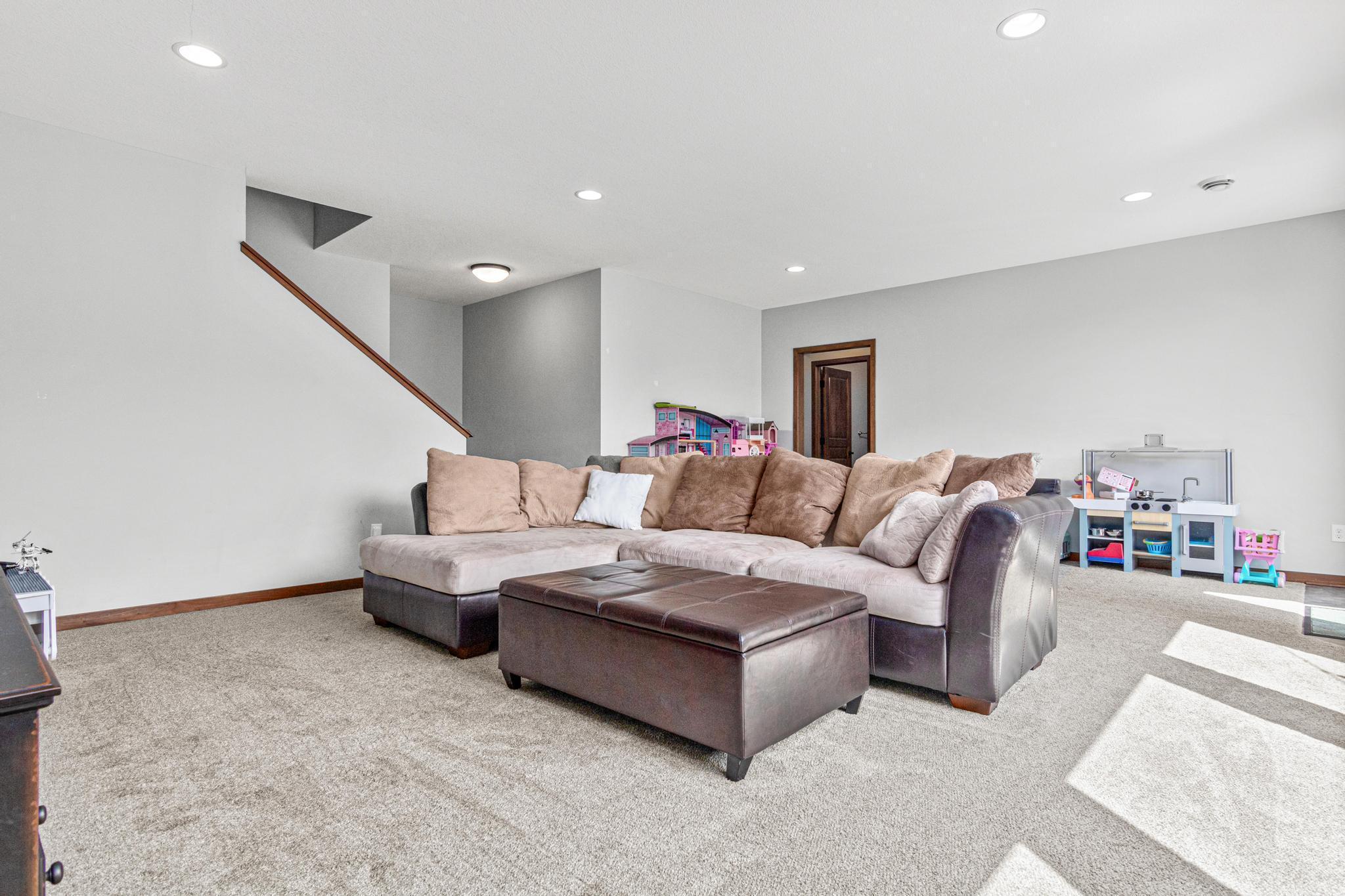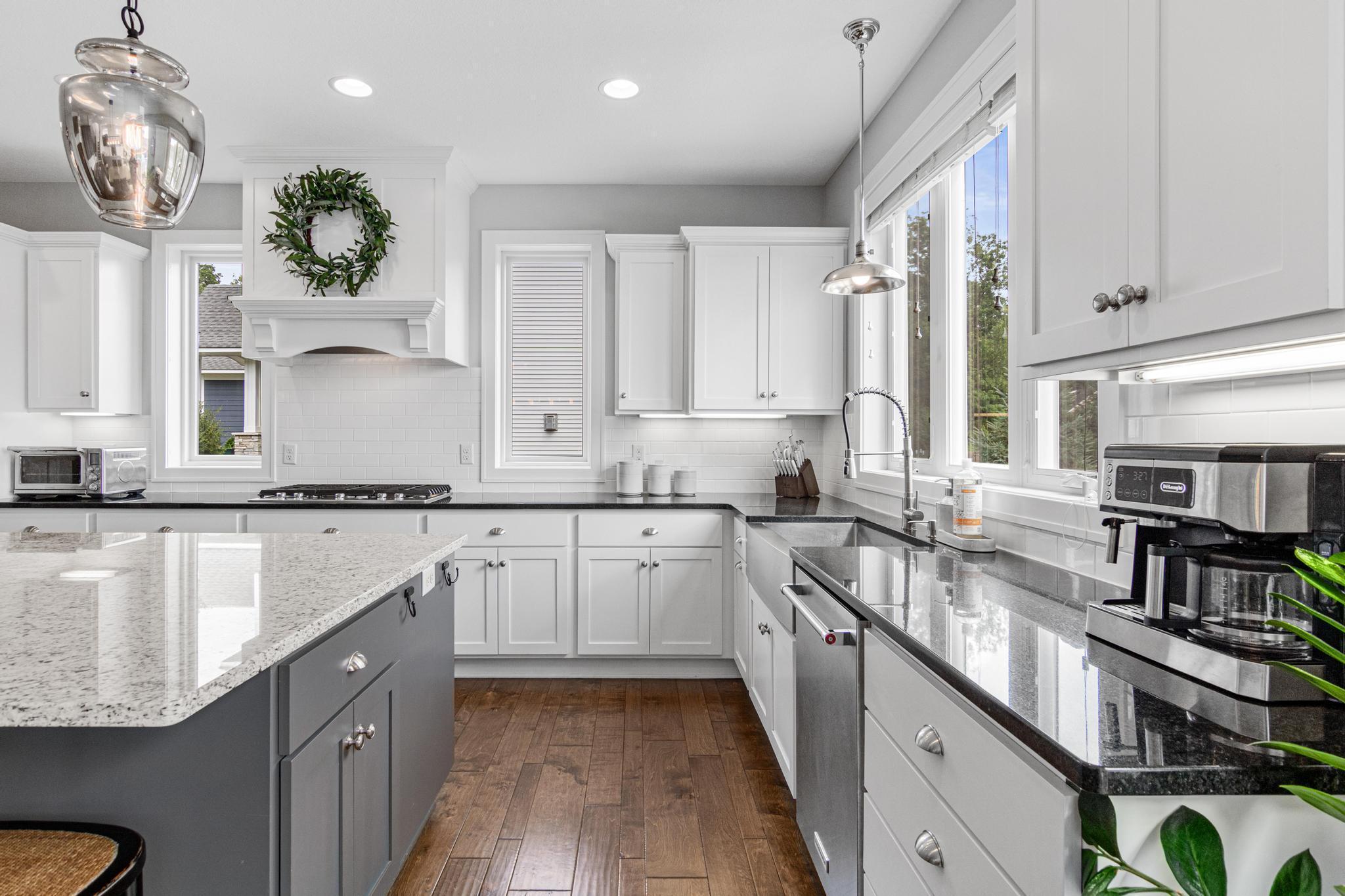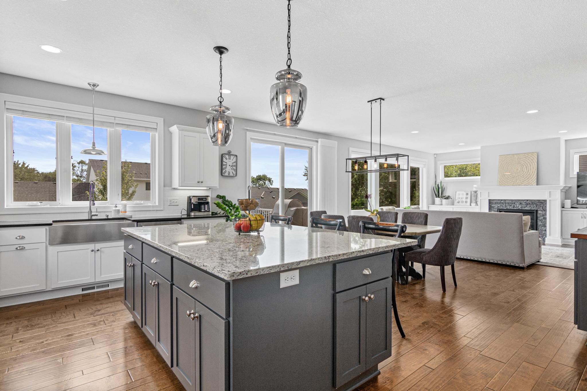 Welcome to this Zawadski Homes custom build near Lake Owasso. This beautifully maintained 4-bedroom, 4-bath home offers the style and features of new construction with thoughtful upgrades throughout. You'll love the open-concept main level featuring 9 foot ceilings, gleaming hardwood floors, a stunning kitchen with a large center island, walk-in pantry, and ample space for gathering. Upstairs you'll find three bedrooms, including a luxurious primary suite with a walk in closet, separate tub and shower, double vanity, plus the convenience of second-floor laundry. The walkout lower level includes a cozy family room, 4th bedroom, full bath, and a dedicated office--perfect for remote work. Step out to your custom paver patio, ideal for entertaining or relaxing with some of the friendliest neighbors in town. Easy access to walking trails, the beach, parks, with views of Lake Owasso. Don't miss this rare opportunity in sought-after Mounds View Schools!