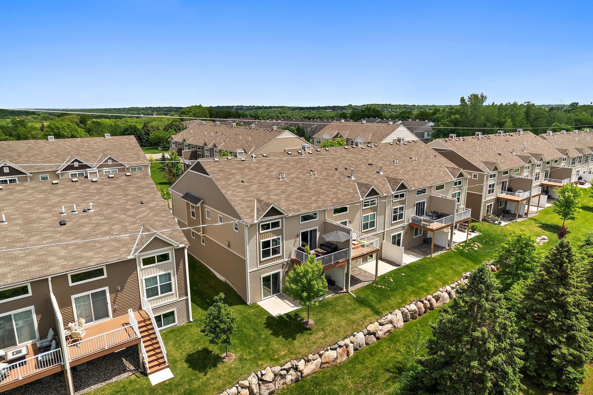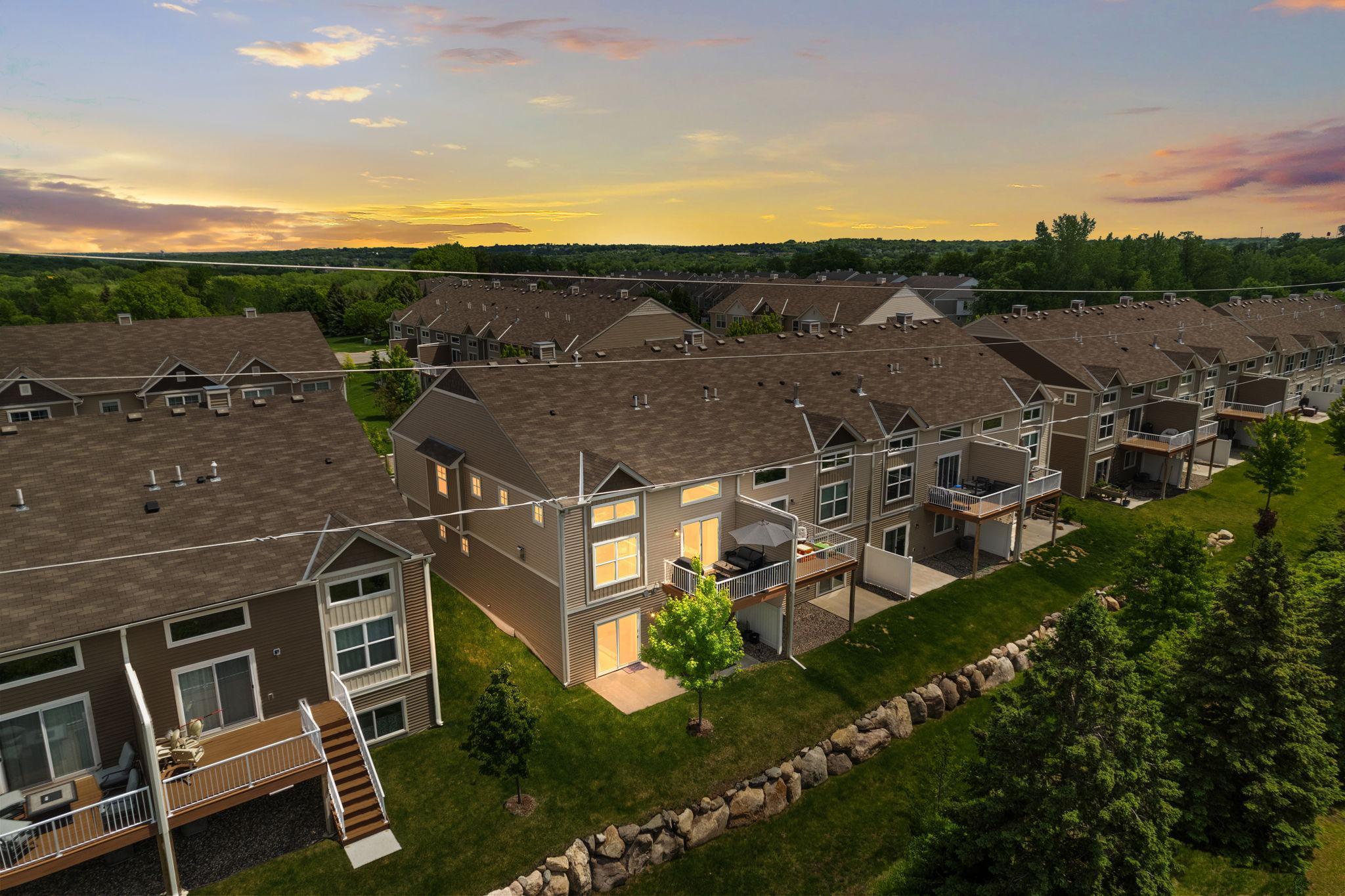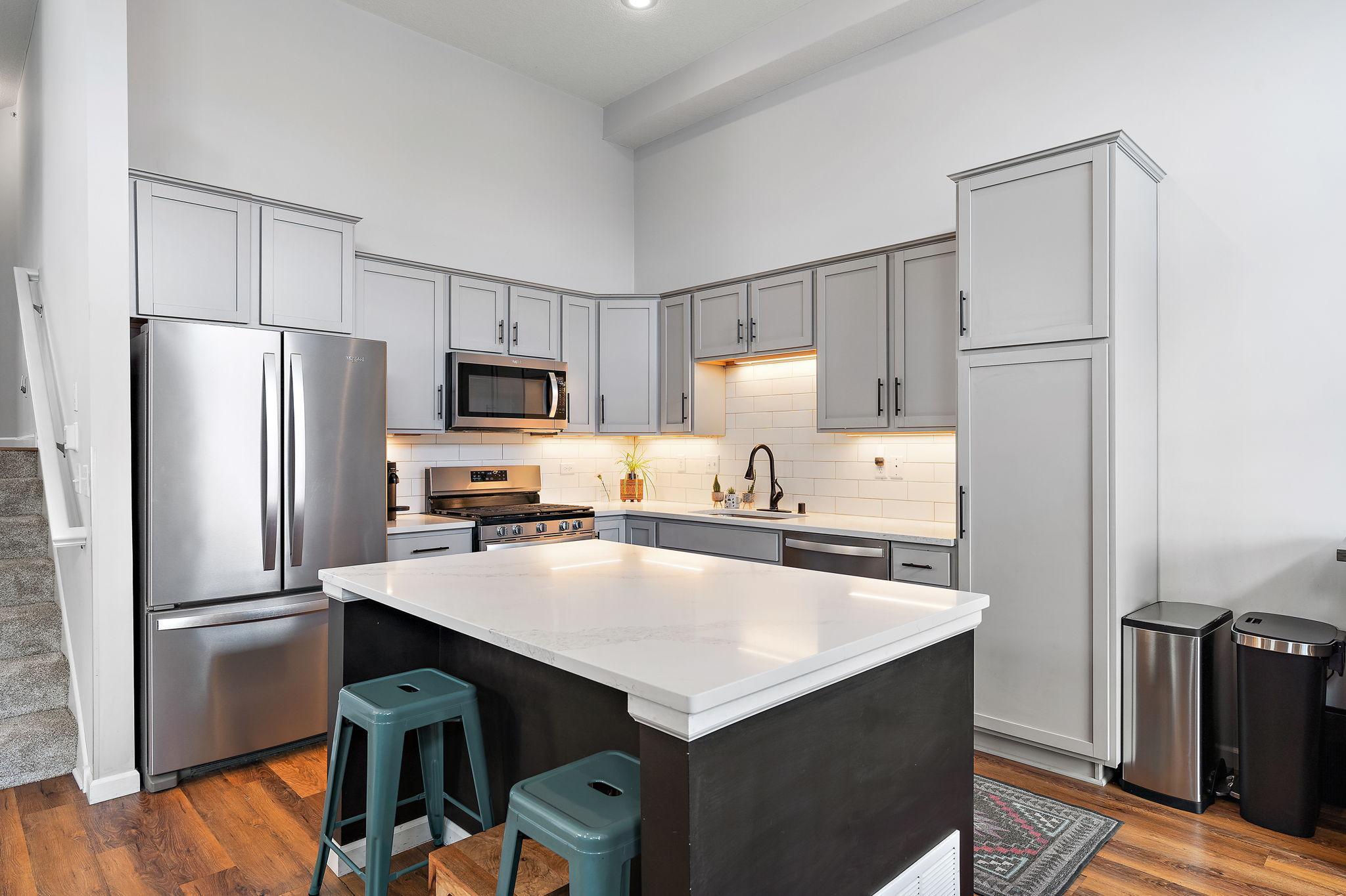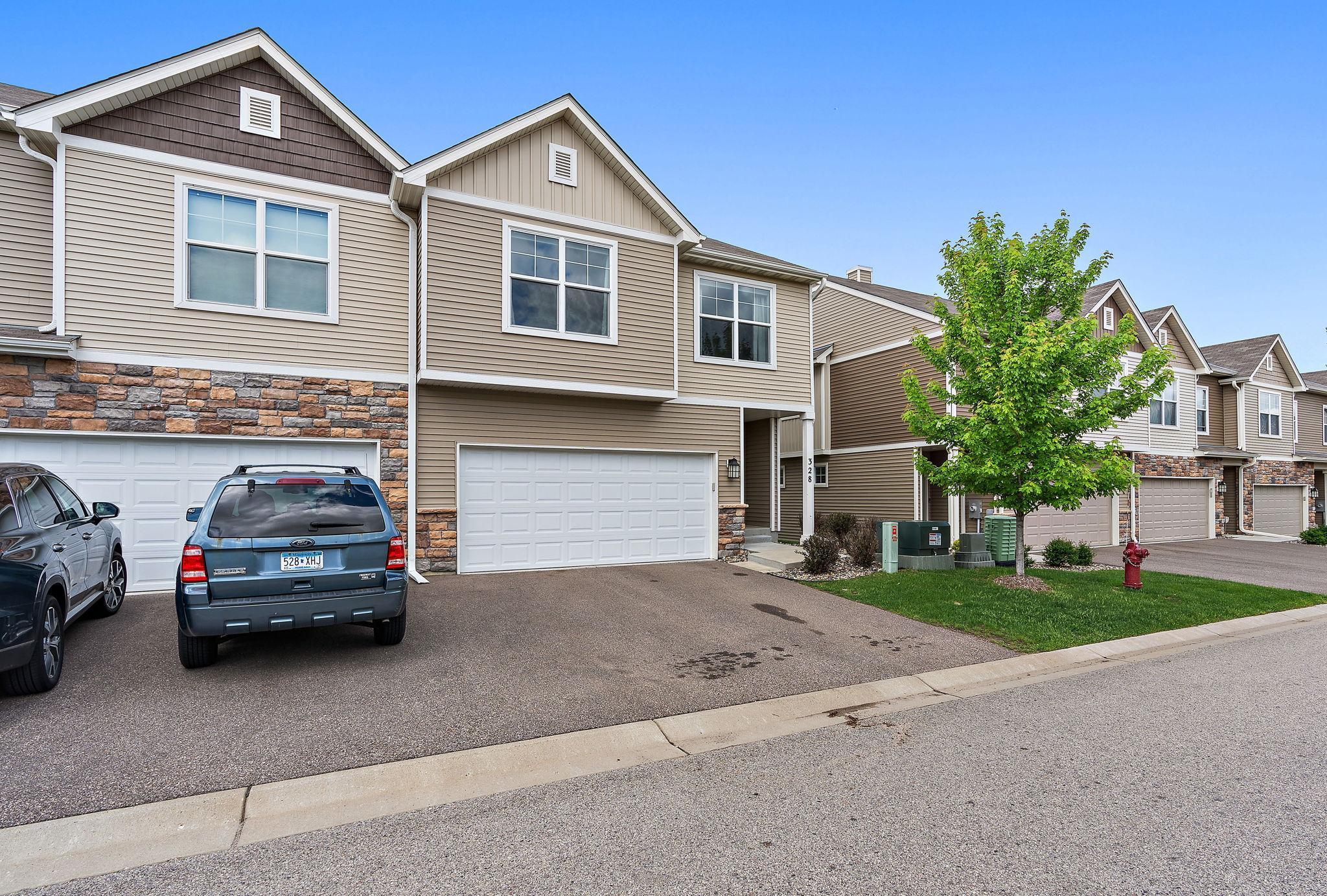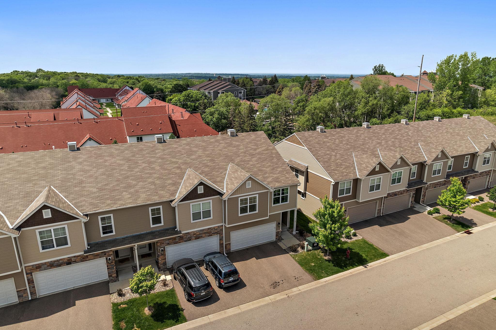 This beautifully upgraded end unit townhome, built in 2019 features soaring 13 Ft. ceilings throughout the main level with LVP flooring that seamlessly flows from room to room. The kitchen features stainless steel appliances, subway tile backsplash, quartz countertops, and a huge center island. Natural light floods the living spaces from perfectly placed transom windows, creating a bright and inviting ambiance. Cozy up by the gas-burning fireplace in the main level living room, complete with built-in cabinetry for added charm and functionality. Retreat to the primary bedroom, featuring a spacious walk-in closet and a private owner's suite bathroom complete with double sinks, a walk-in shower, and a soaking tub with custom tile surround. Downstairs, the walkout basement expands the living space with a family room, additional bedroom, full bathroom, and extended patio slab.. Conveniently located close to shopping, restaurants, and more with easy access to 35W and 35E!