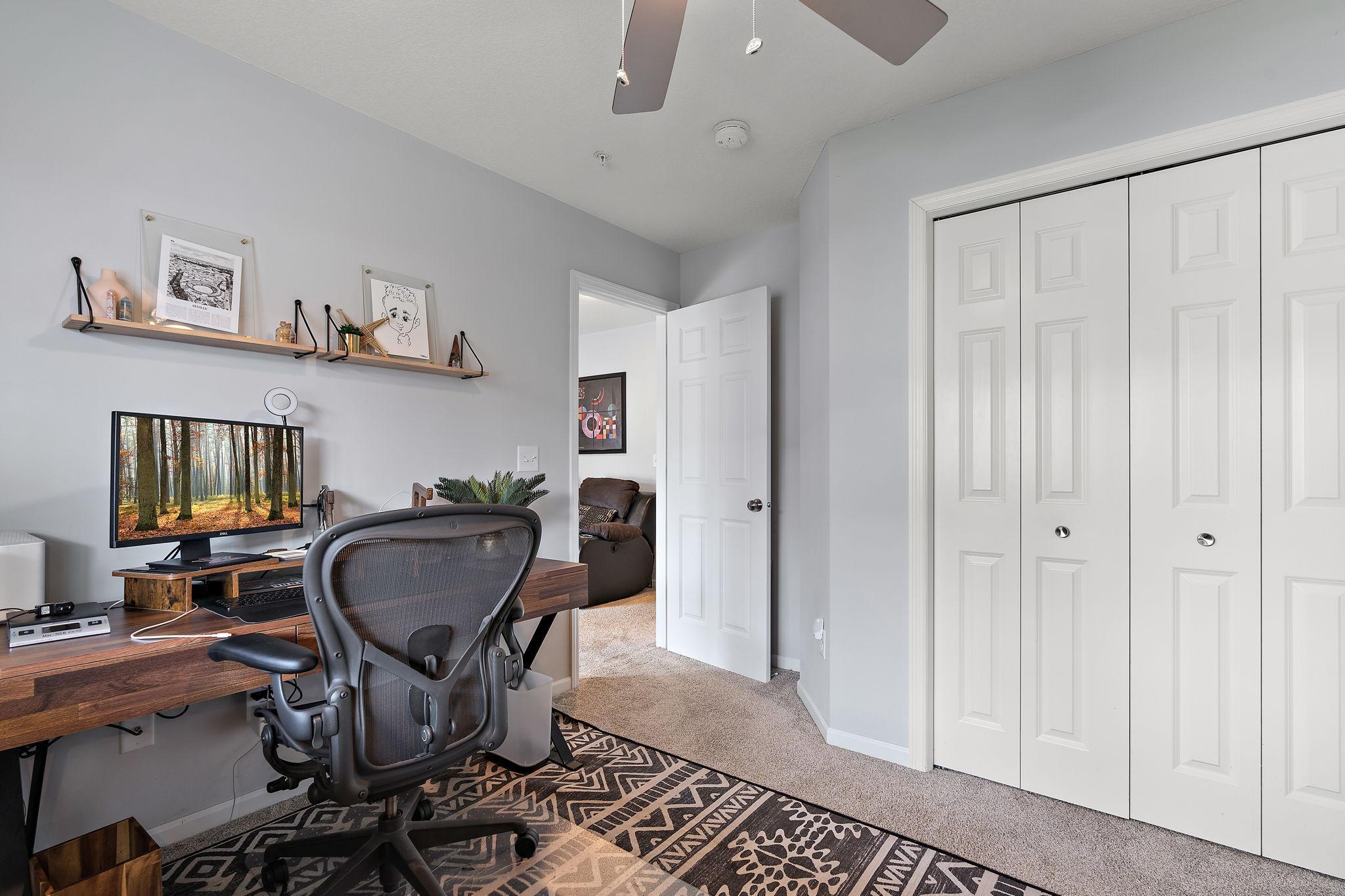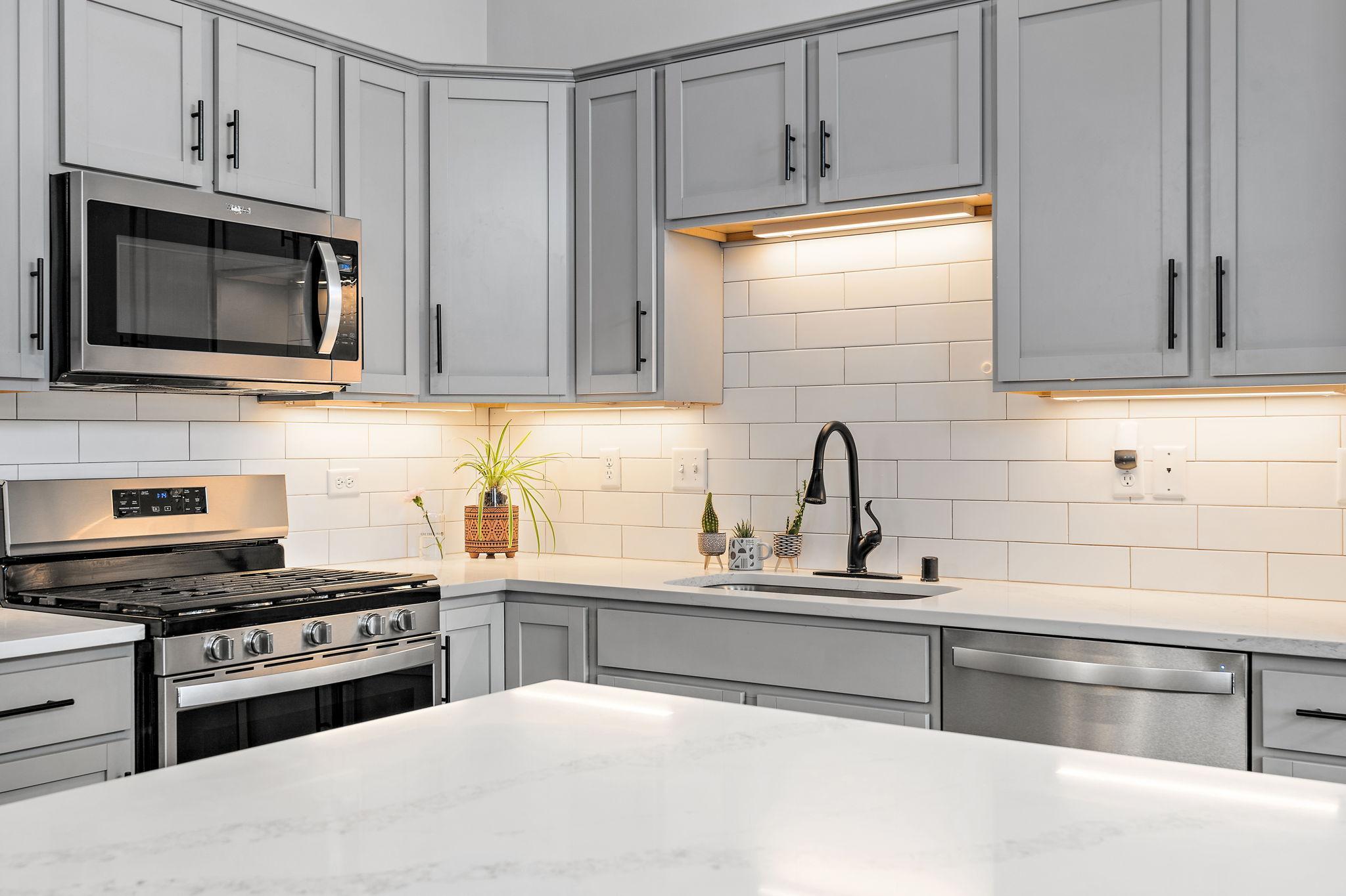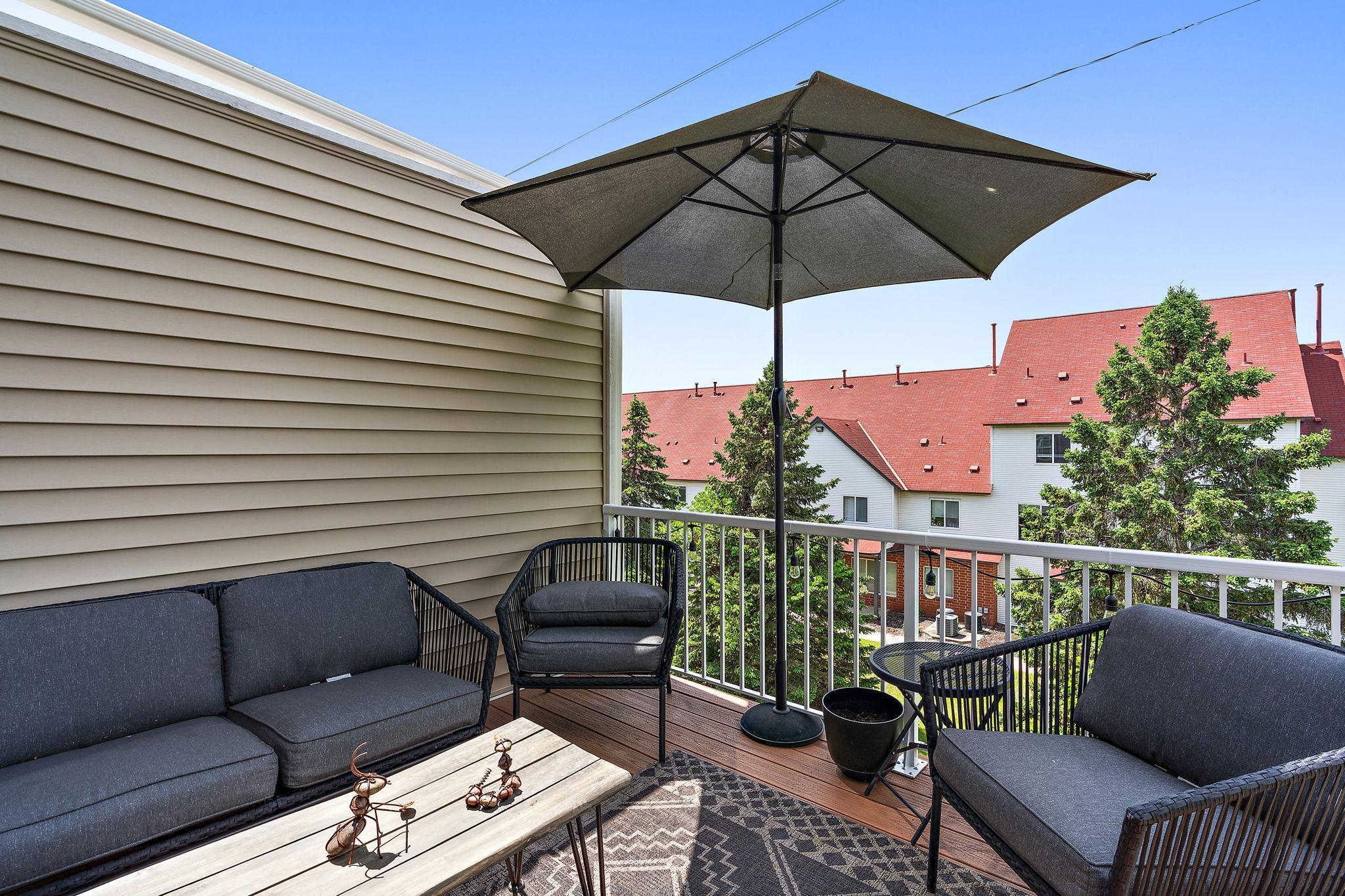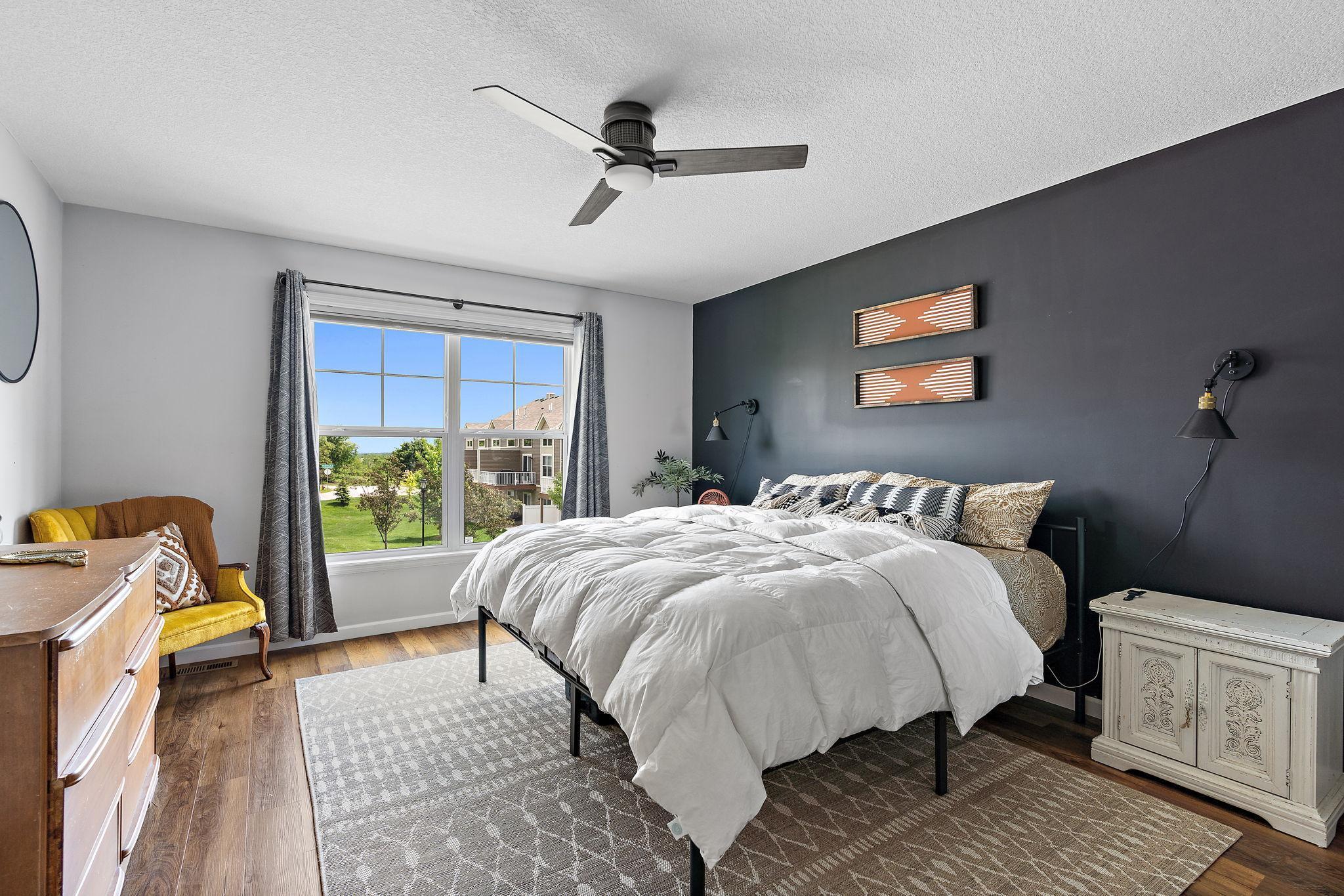 This beautifully upgraded end unit townhome, built in 2019 features soaring 13 Ft. ceilings throughout the main level with LVP flooring that seamlessly flows from room to room. The kitchen features stainless steel appliances, subway tile backsplash, quartz countertops, and a huge center island. Natural light floods the living spaces from perfectly placed transom windows, creating a bright and inviting ambiance. Cozy up by the gas-burning fireplace in the main level living room, complete with built-in cabinetry for added charm and functionality. Retreat to the primary bedroom, featuring a spacious walk-in closet and a private owner's suite bathroom complete with double sinks, a walk-in shower, and a soaking tub with custom tile surround. Downstairs, the walkout basement expands the living space with a family room, additional bedroom, full bathroom, and extended patio slab.. Conveniently located close to shopping, restaurants, and more with easy access to 35W and 35E!