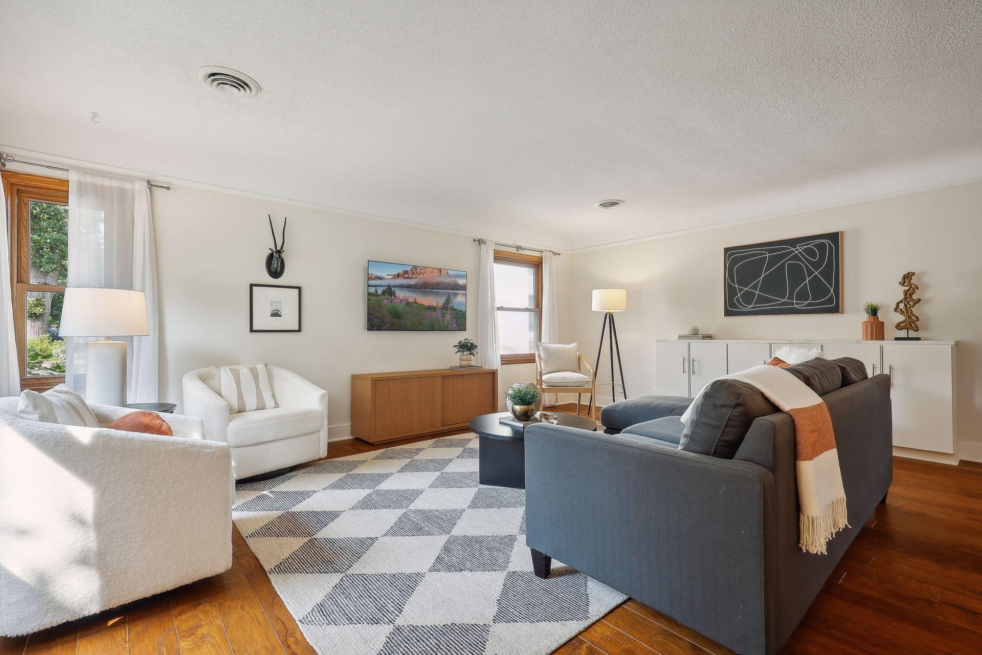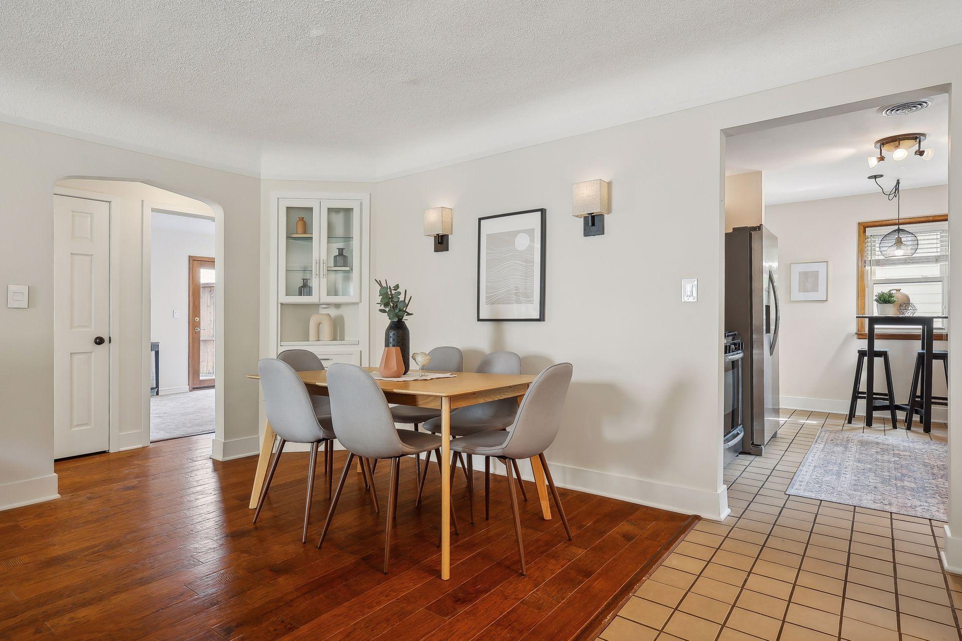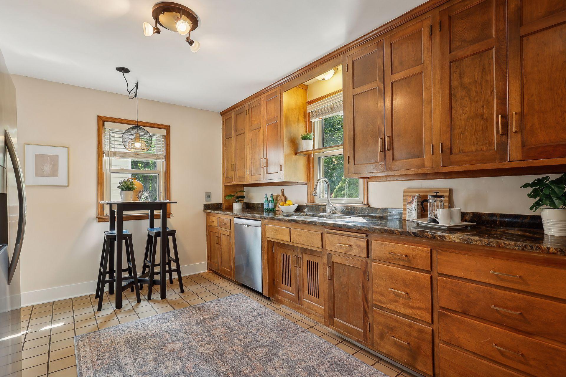 Nestled in St. Louis Park's quiet and charming Minikahda Oaks neighborhood, this home is steps away from a serene 52-acre nature preserve and the Cedar Lake Regional Trail. Beautifully updated and move-in ready, it boasts an open floor plan with coved ceilings, hardwood floors, and six-panel doors, blending classic charm with modern comfort. The spacious kitchen features abundant cabinetry, granite countertops, and stainless steel appliances. Enjoy the luxury of in-floor radiant heating throughout, complemented by central AC for year-round comfort. The sun porch off the primary bedroom and a deck off the second bedroom offer delightful outdoor spaces for relaxation and entertaining. The fully fenced yard provides privacy and is perfect for pets or gardening. An oversized two-car garage, built in 2001, offers ample storage, while recent updates include new carpet, extensive interior painting, and updated light fixtures. Incredible retail and dining options abound, including Trader Joe's, Whole Foods, Starbucks, Punch Pizza, Wakame Sushi, Crisp & Green, Yum Kitchen and Bakery, and Chipotle, just to name a few. With its unique slab-on-grade design and no basement, this home ensures easy maintenance and peace of mind.