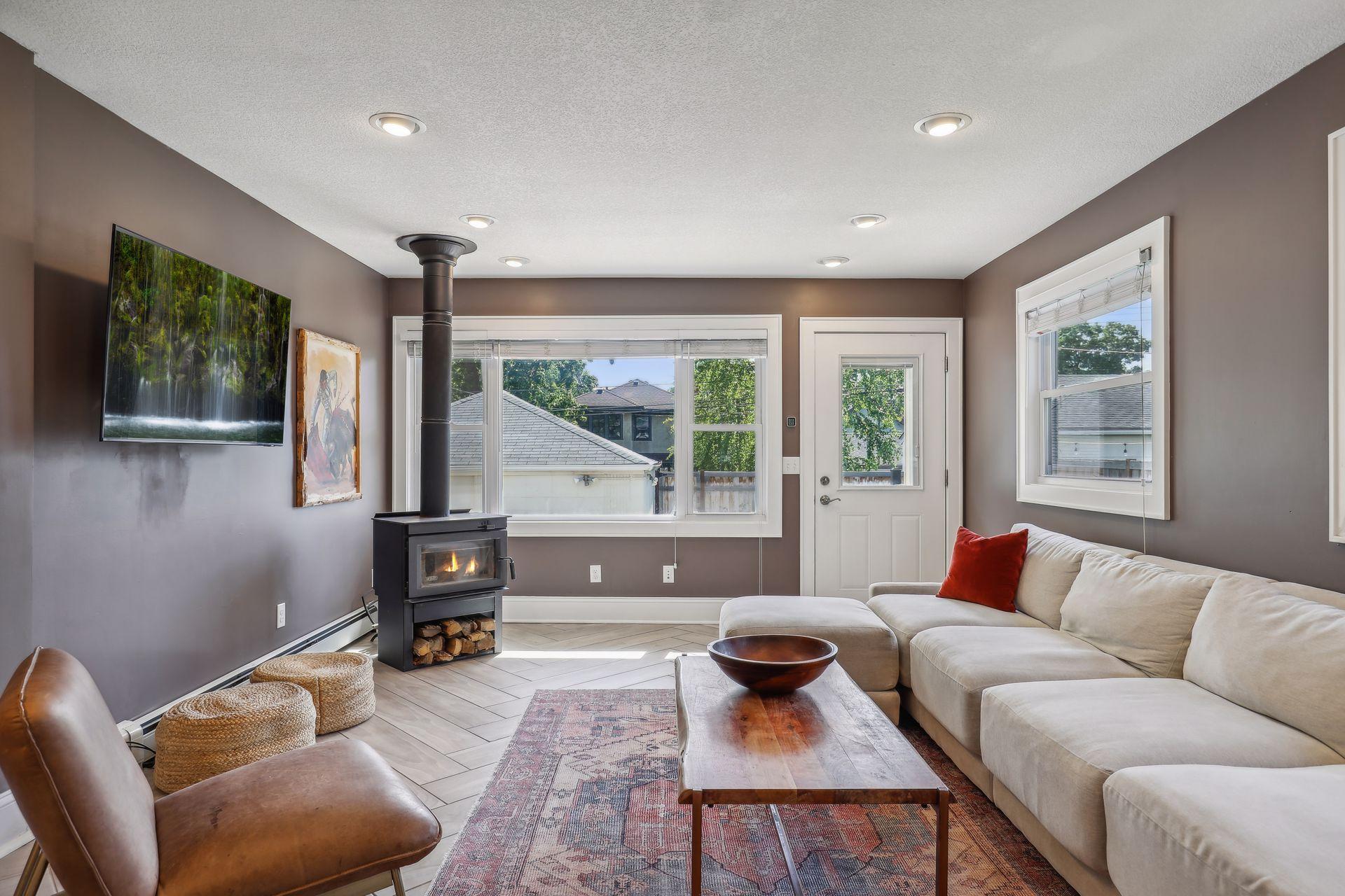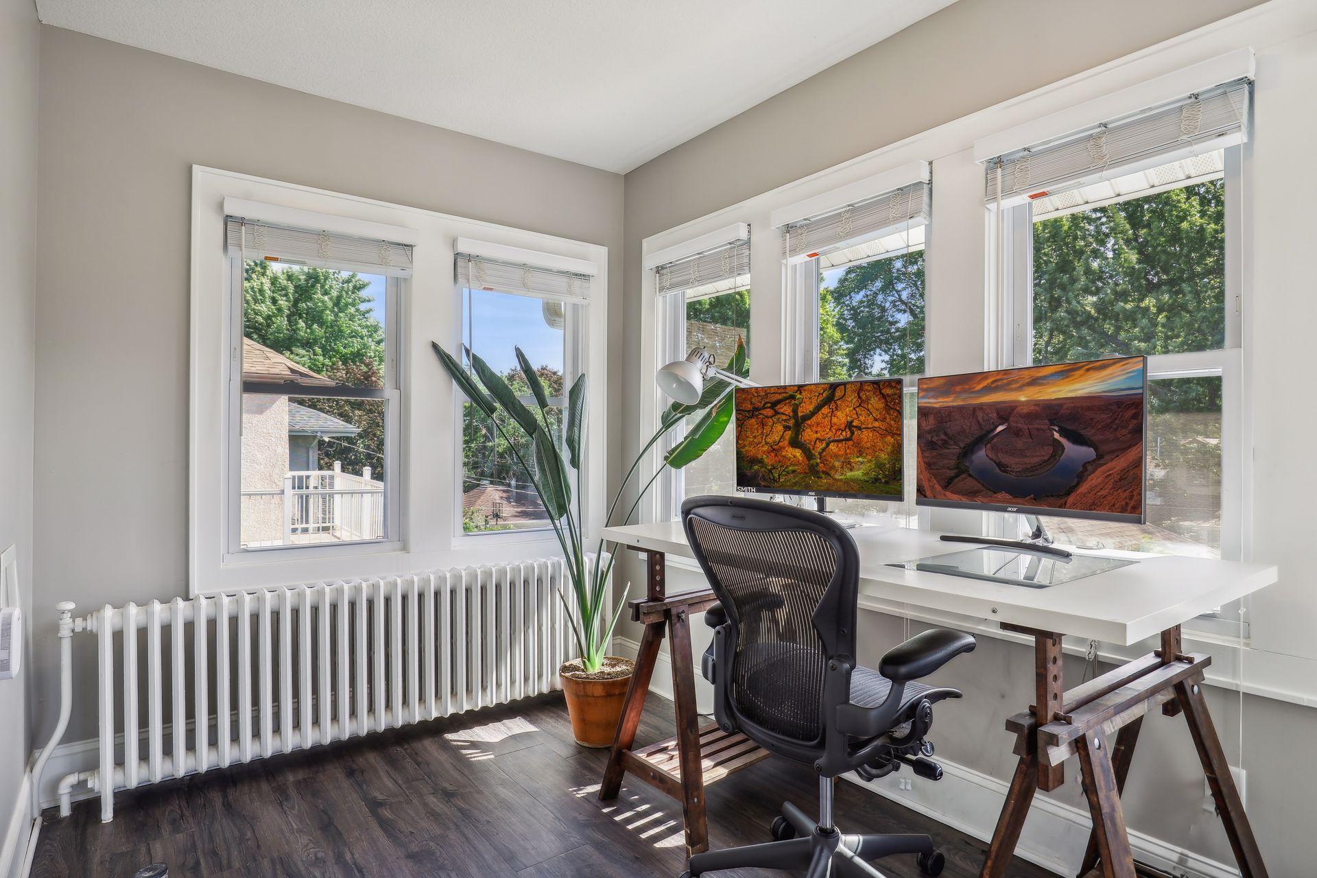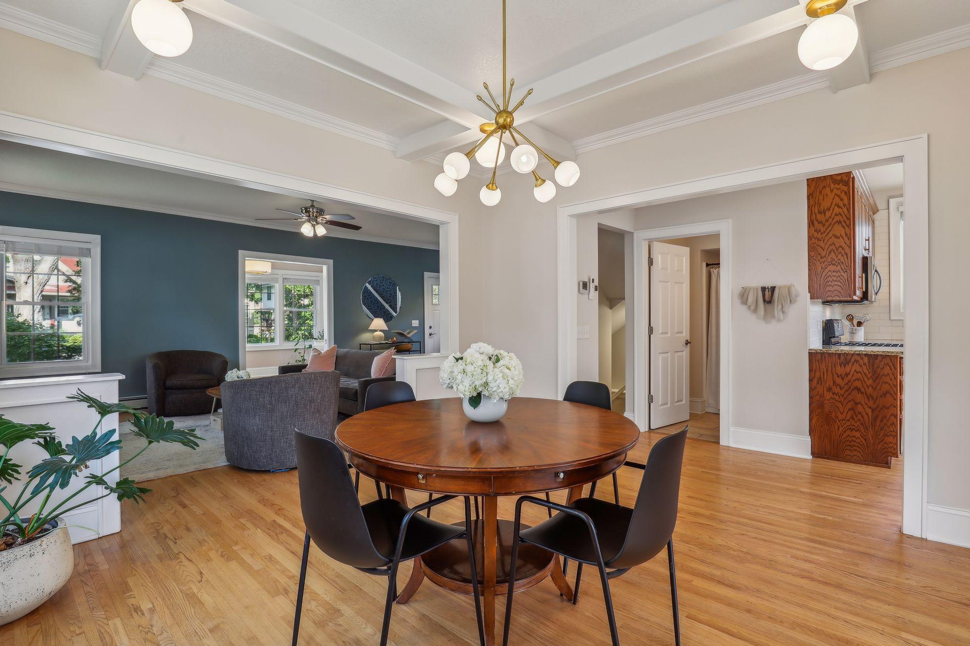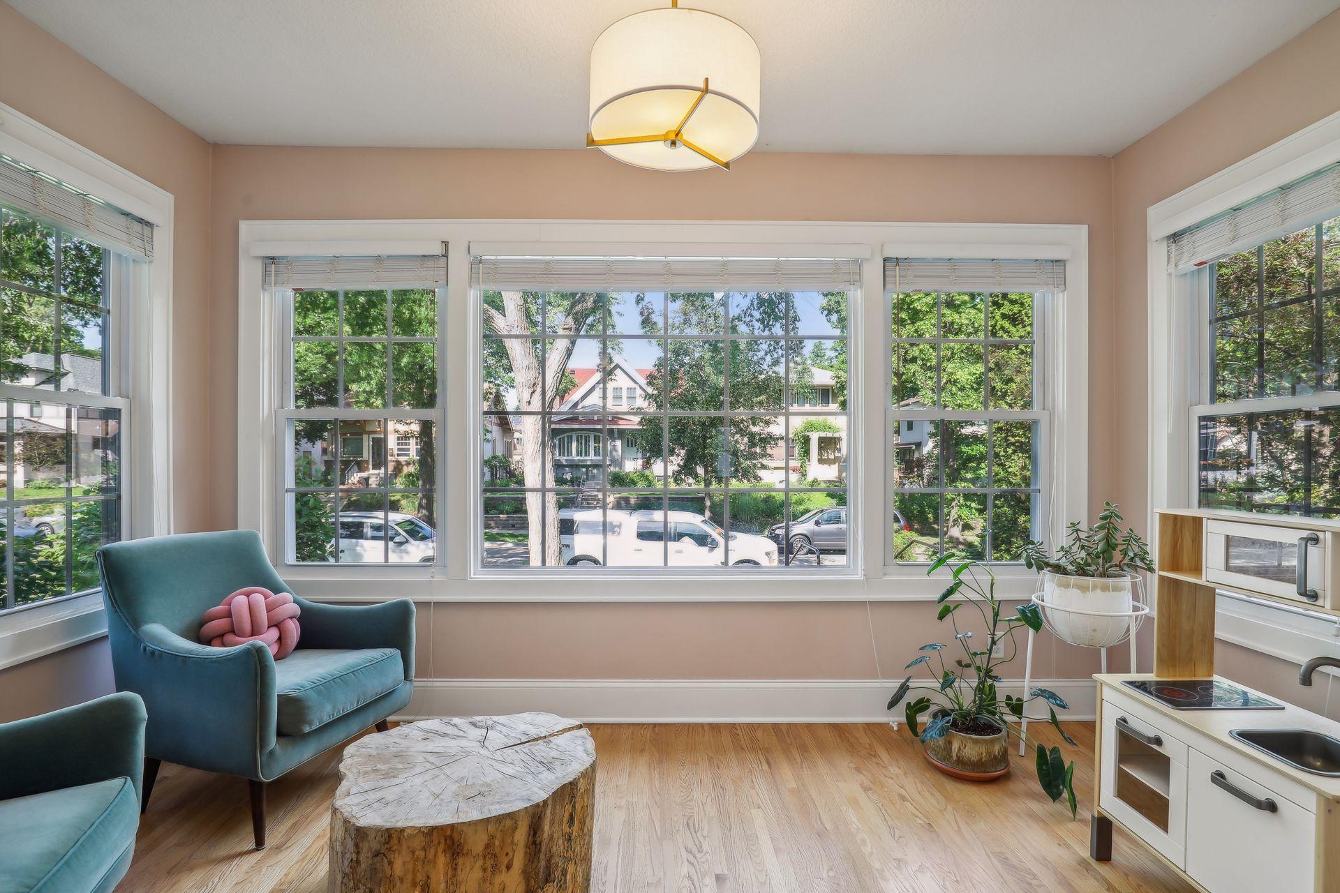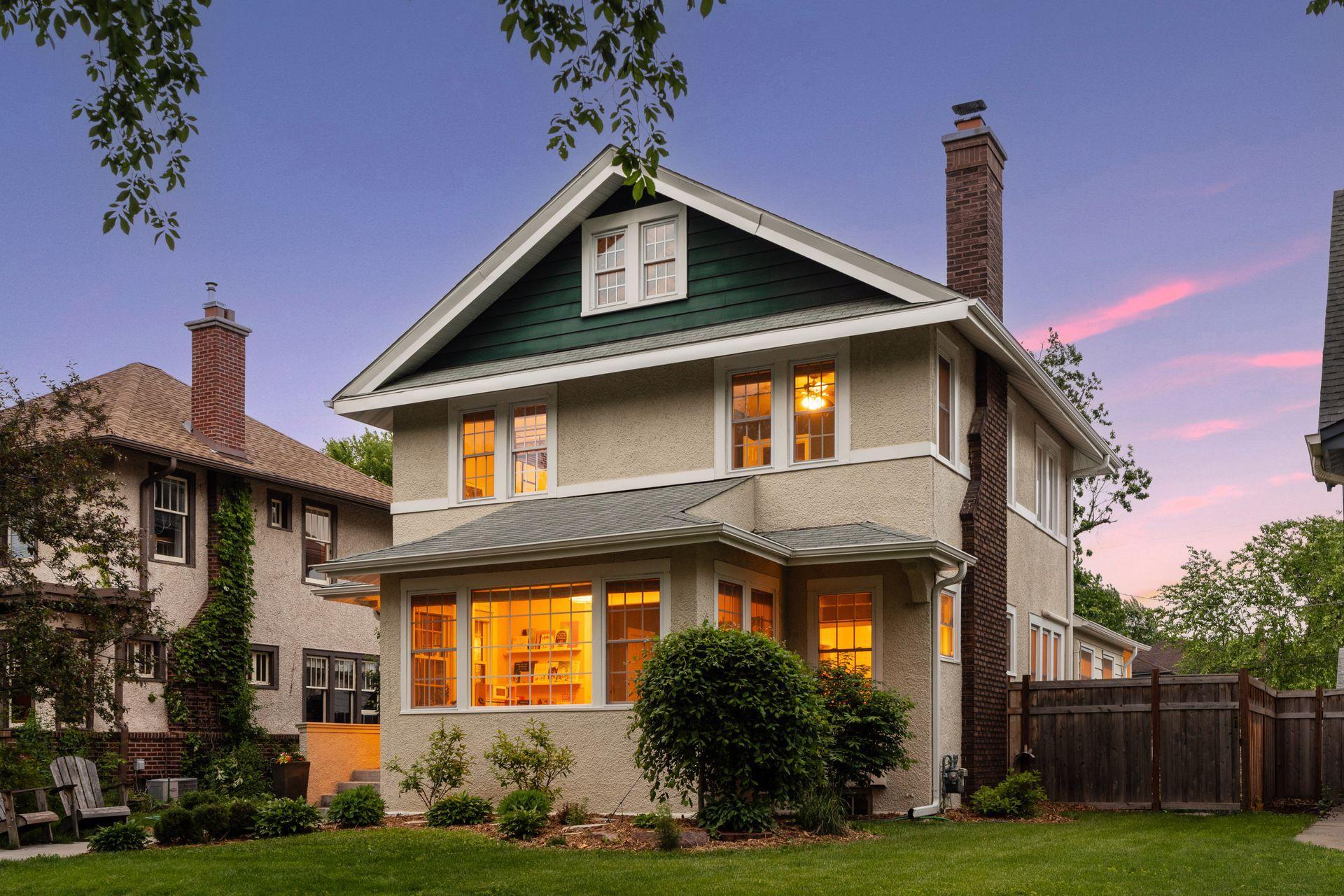 Renovated Craftsman 2+ story home in sought after Kingfield! Bright and open floor plan with 9ft ceilings and all newer windows that allow for the natural light to shine through. Gleaming wood floors and new carpet. The main floor features a sun room, living room, formal dining with a coffered ceiling, family room and bathroom, excellent flow that is great for entertaining. New tile backplash and reverse osmosis system in the kitchen. The upper level has 3 bedrooms and an office, which is plumbed for washer/dryer hookup for future 2nd level laundry room. Bring your ideas to finish the 3rd floor! Ample storage in the Lower level with a family room and guest bedroom that could double as a game room. Beautifully landscaped with paver patio and privacy. Blocks from Lake Harriet, nearby trails, restaurants and parks. Move-in ready!