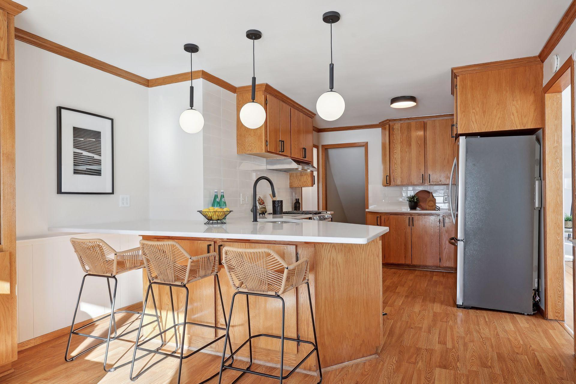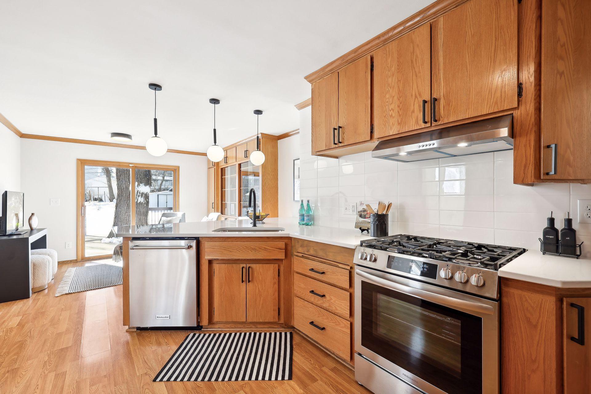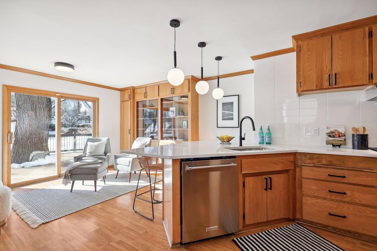 Beautiful and stylish 1950s two-story in St Louis Park's sought-after Minikahda Vista neighborhood. Wonderful layout, huge windows, outstanding natural light. Spacious mid-century kitchen with original oak cabinets, floor-to-ceiling built-in buffet, gleaming quartz counters, and modern stainless appliances. Upstairs you'll find four bedrooms, hardwood floors, and two bathrooms including an owner's suite with a brand new bathroom. The lower level has been completely refreshed and has new carpet, a gas fireplace, and a bright and clean utility room with laundry and storage. Additional home highlights: refinished floors, new light fixtures, new electrical panel, new garage slab, newer mechanicals. Set on an extra deep lot with a spacious and flat backyard. Outstanding location close to the Minneapolis lakes, 50th & France, freeways and transportation. Walk to multiple parks, Excelsior & Grand, Starbucks, Trader Joes, Core Power Yoga, Honey and Rye Bakehouse, and much more!
