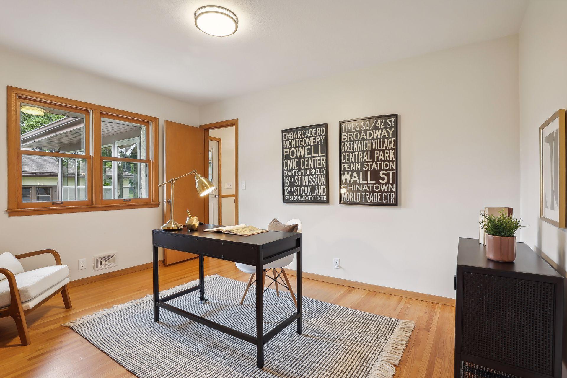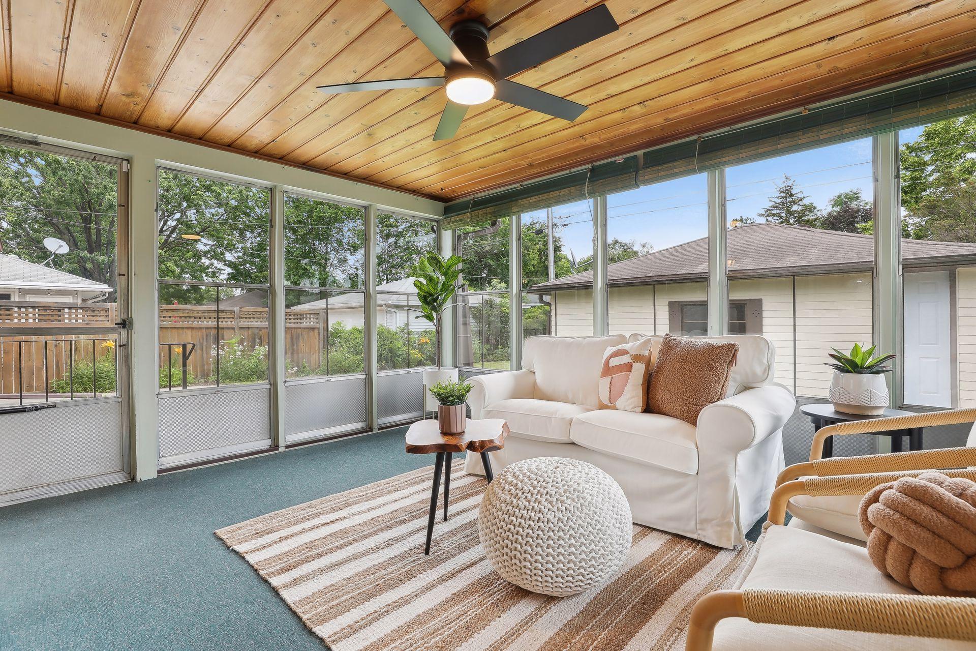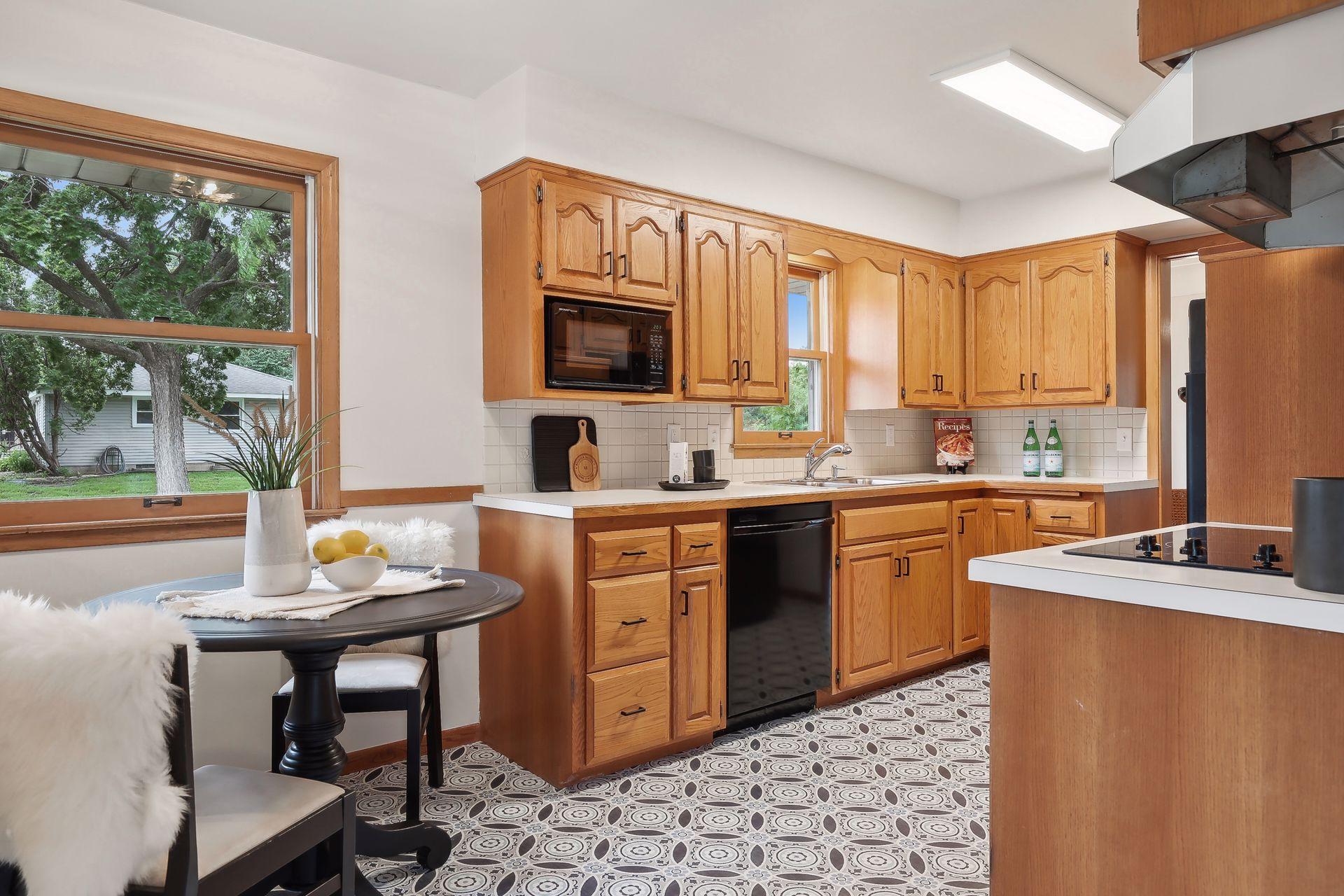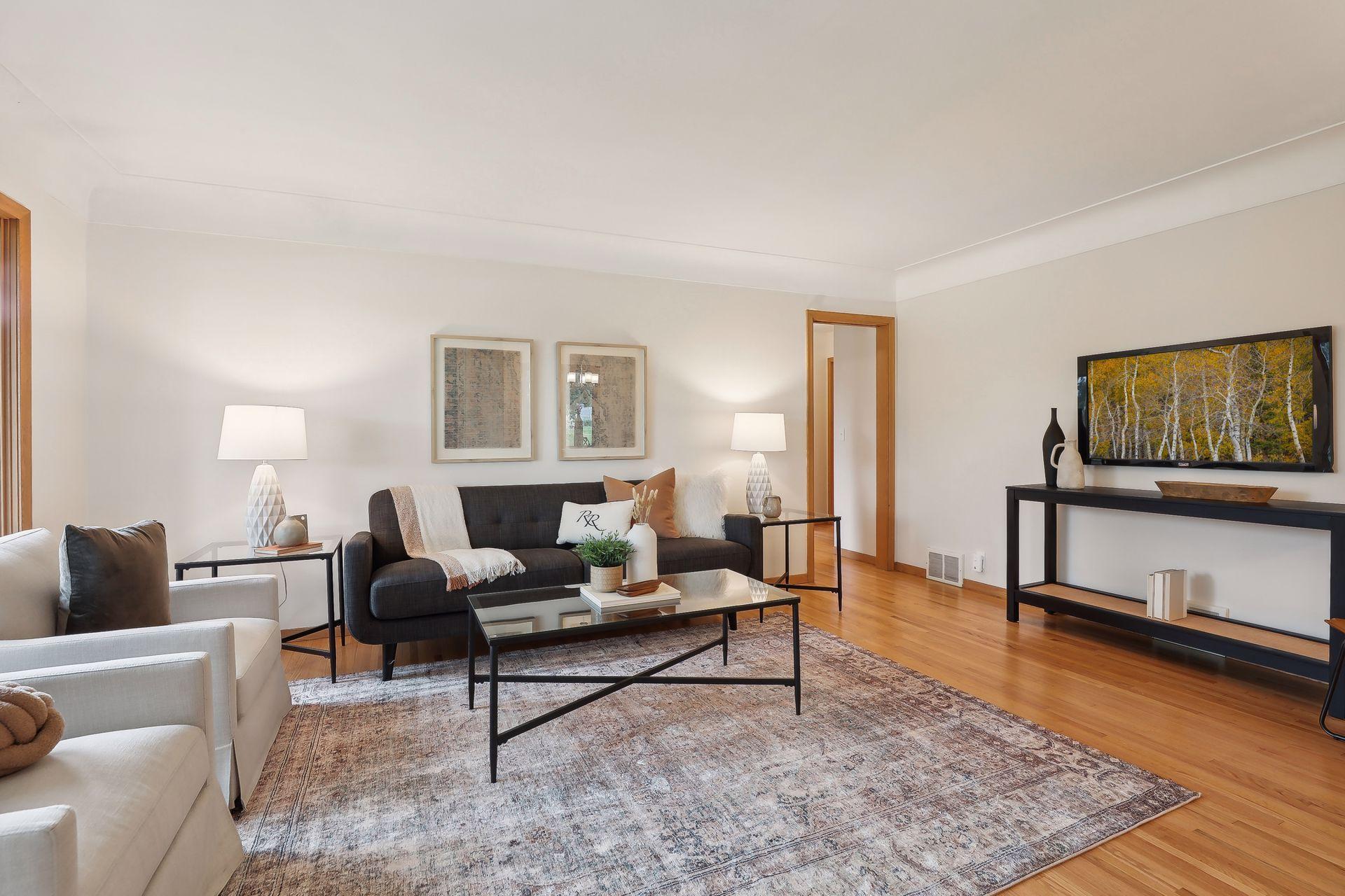 Welcome to 7345 15th Ave S, Richfield, MN! This beautiful 1950s rambler sits on a fantastic corner lot, right across from a serene pond. Enjoy wonderful sunset views and great natural light through the southwest-facing windows. Fantastic design and beautiful finishes throughout including gleaming hardwood floors, a built-in dining buffet, gorgeous front door, updated lighting, brand new carpet, and fresh paint. The stylish kitchen features new flooring, a cozy breakfast nook, abundant cabinets, new cooktop, retro exhaust hood, and a walk-in pantry. Additional main floor highlights include three bedrooms and an updated bathroom with a dual vanity and granite counters. Downstairs you'll find an expansive family room, office, a three-quarter bath, and outstanding storage. You'll love relaxing on your wonderful three-season porch overlooking the spacious patio, fenced yard, & gardens. A spacious two car garage has room for vehicles and more. This gem is in turnkey condition--move right in!