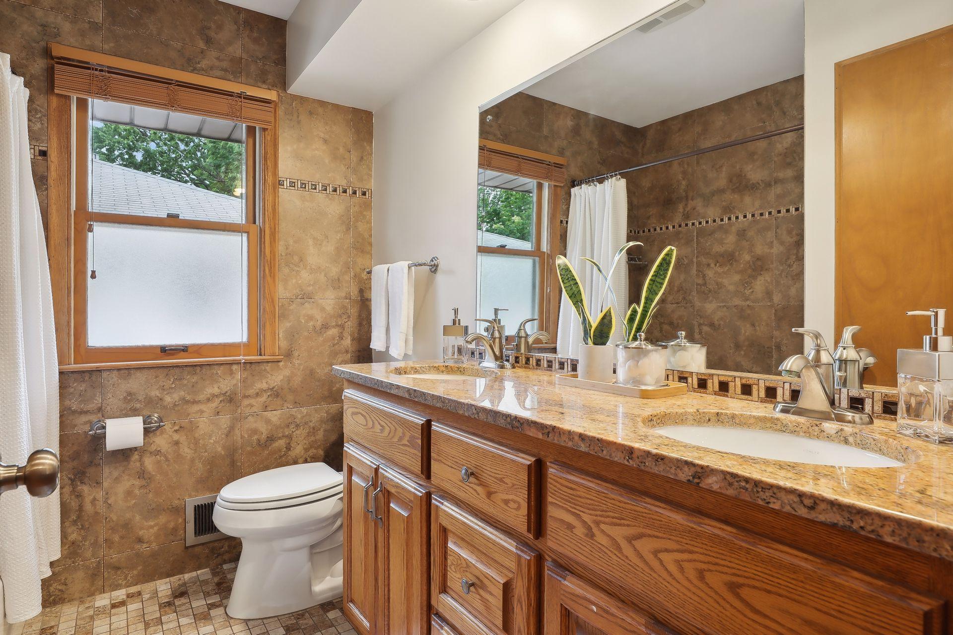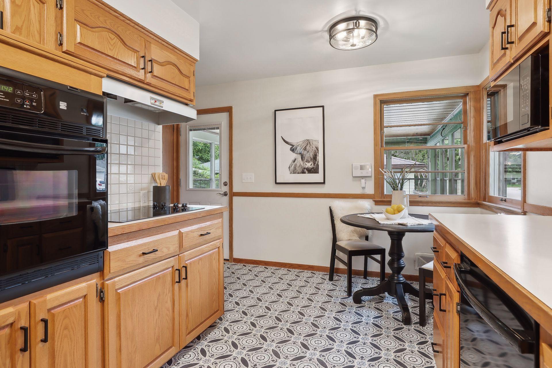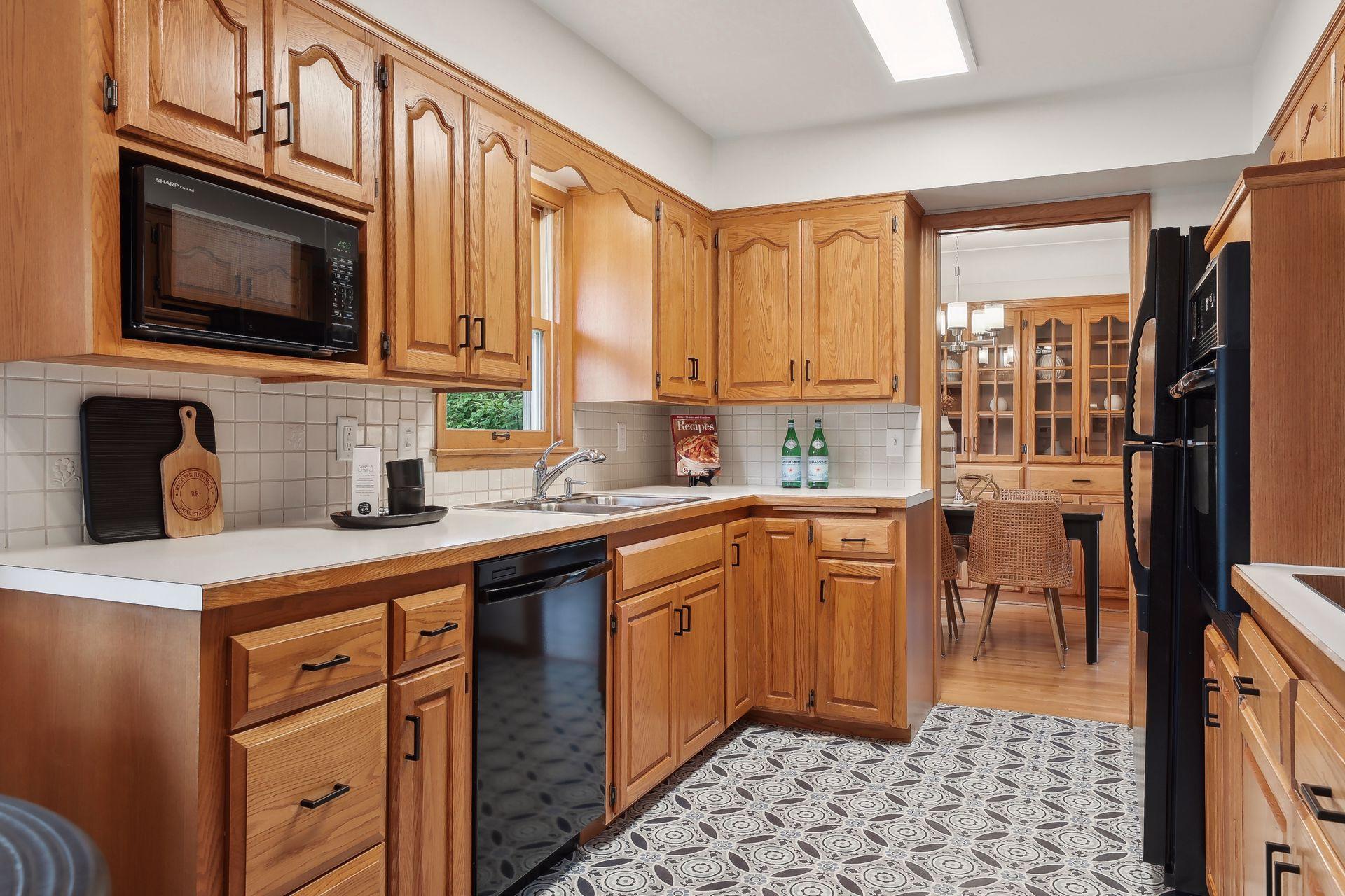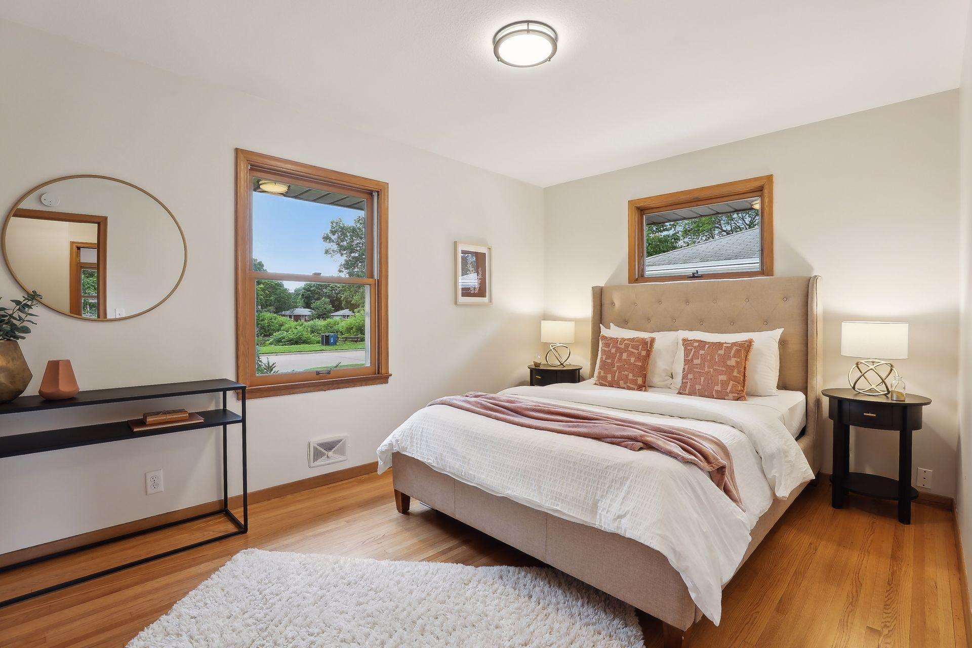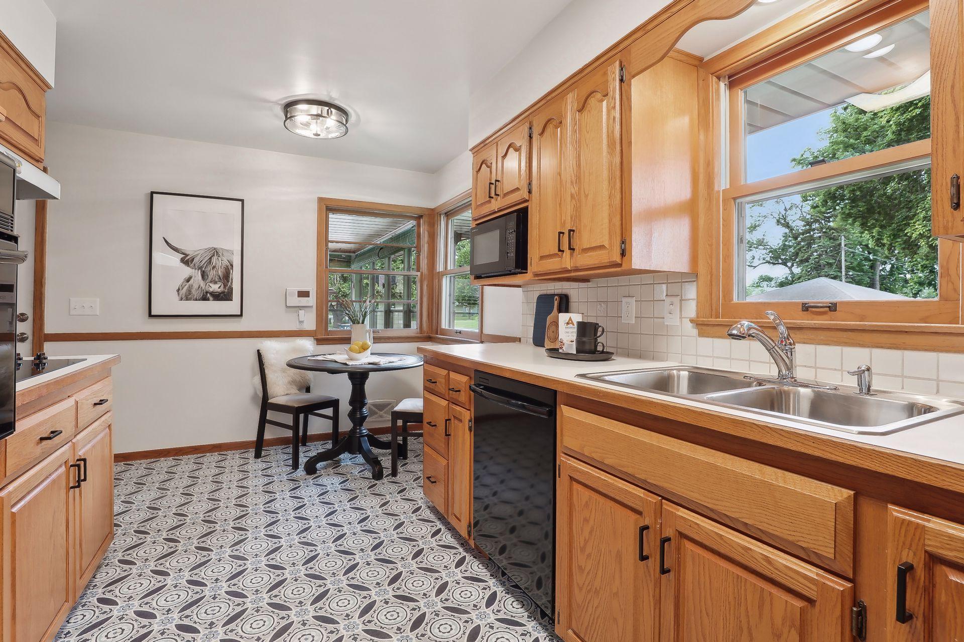 Welcome to 7345 15th Ave S, Richfield, MN! This beautiful 1950s rambler sits on a fantastic corner lot, right across from a serene pond. Enjoy wonderful sunset views and great natural light through the southwest-facing windows. Fantastic design and beautiful finishes throughout including gleaming hardwood floors, a built-in dining buffet, gorgeous front door, updated lighting, brand new carpet, and fresh paint. The stylish kitchen features new flooring, a cozy breakfast nook, abundant cabinets, new cooktop, retro exhaust hood, and a walk-in pantry. Additional main floor highlights include three bedrooms and an updated bathroom with a dual vanity and granite counters. Downstairs you'll find an expansive family room, office, a three-quarter bath, and outstanding storage. You'll love relaxing on your wonderful three-season porch overlooking the spacious patio, fenced yard, & gardens. A spacious two car garage has room for vehicles and more. This gem is in turnkey condition--move right in!